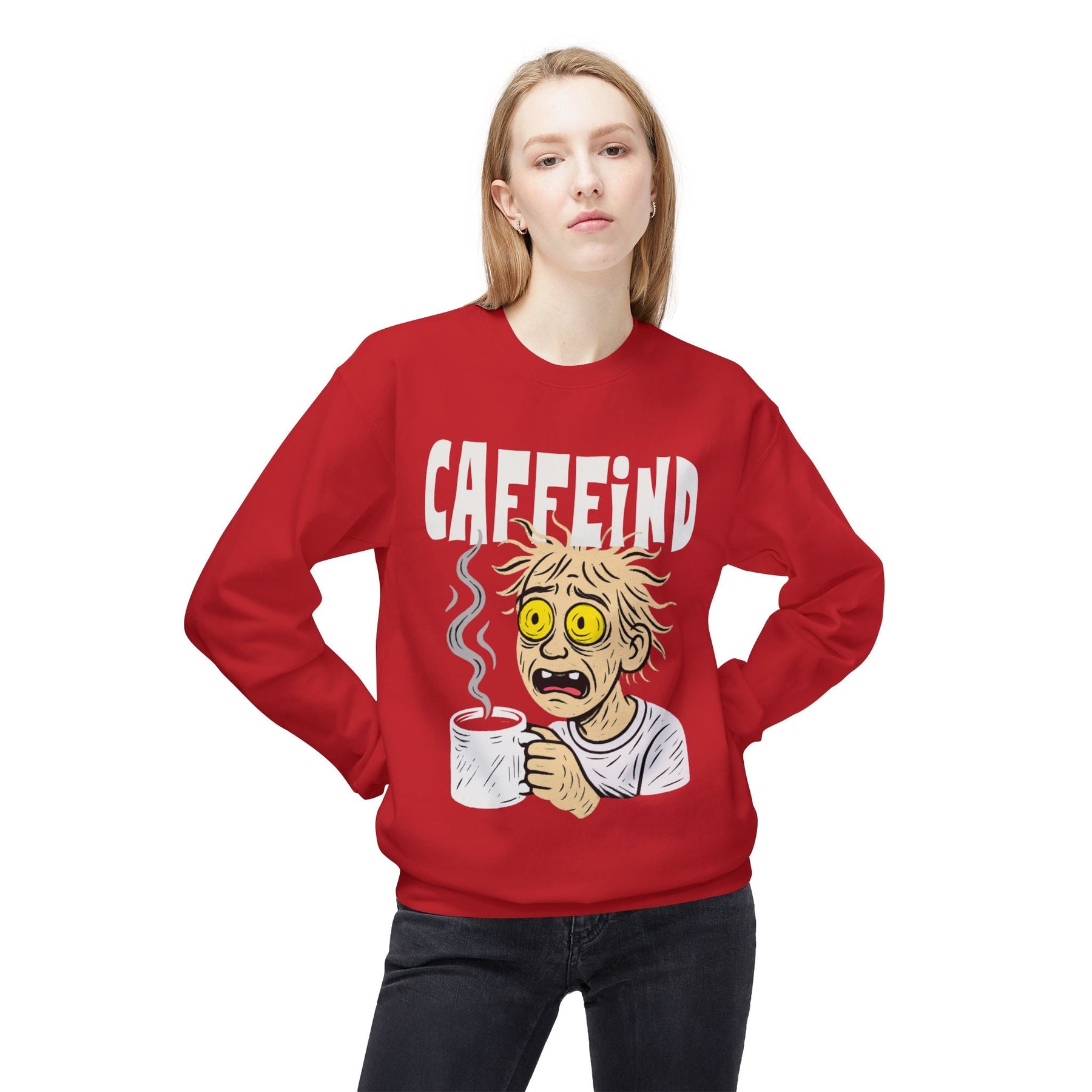 Looking for the perfect coffee lover gift? The Caffeind sweatshirt is perfect for anyone who turns into a zombie without their morning brew. Ideal for baristas and espresso drinkers alike, it's made from soft cotton and is the ultimate coffee addict gift for birthdays, holidays, or just because. Warning: may cause excessive laughter and coffee cravings!