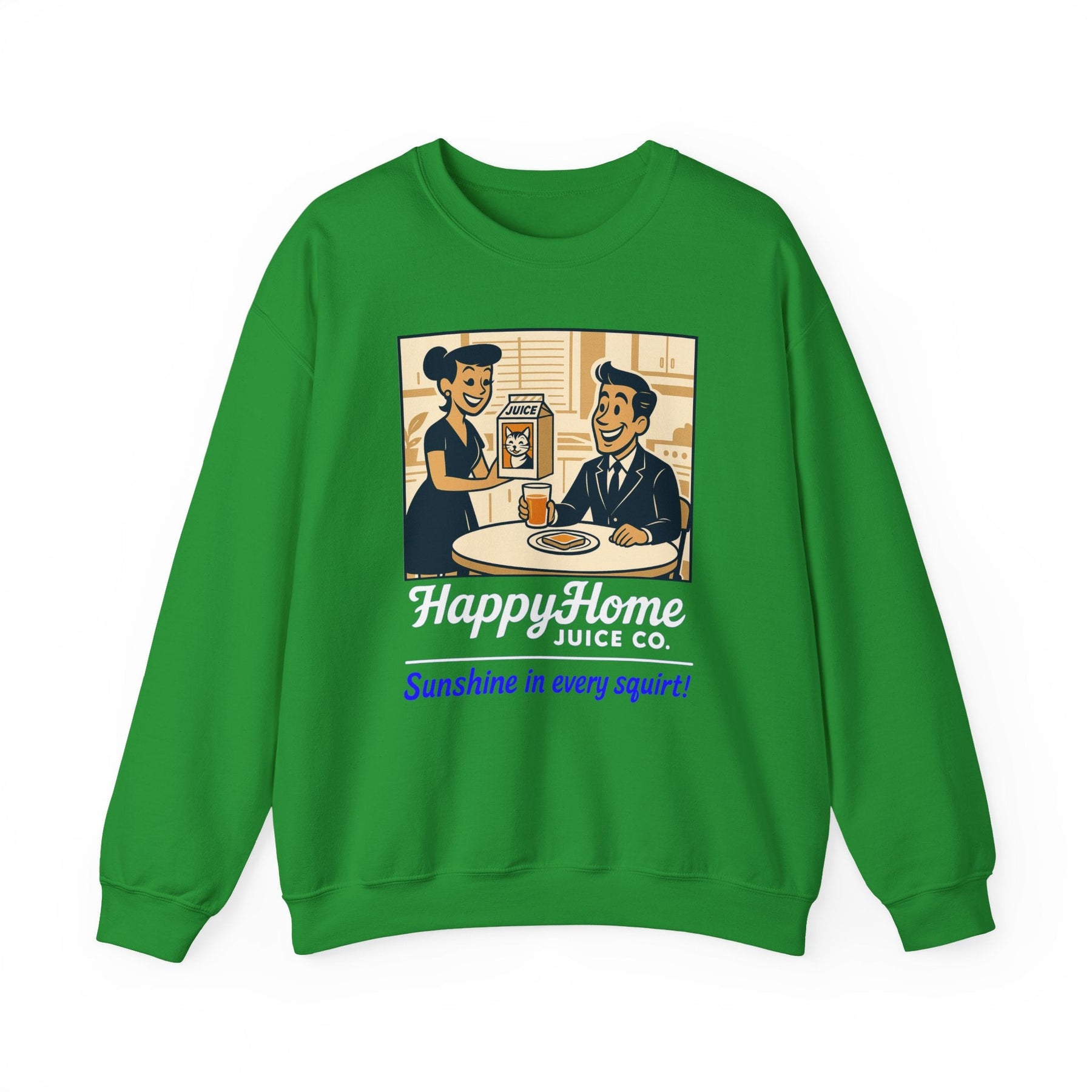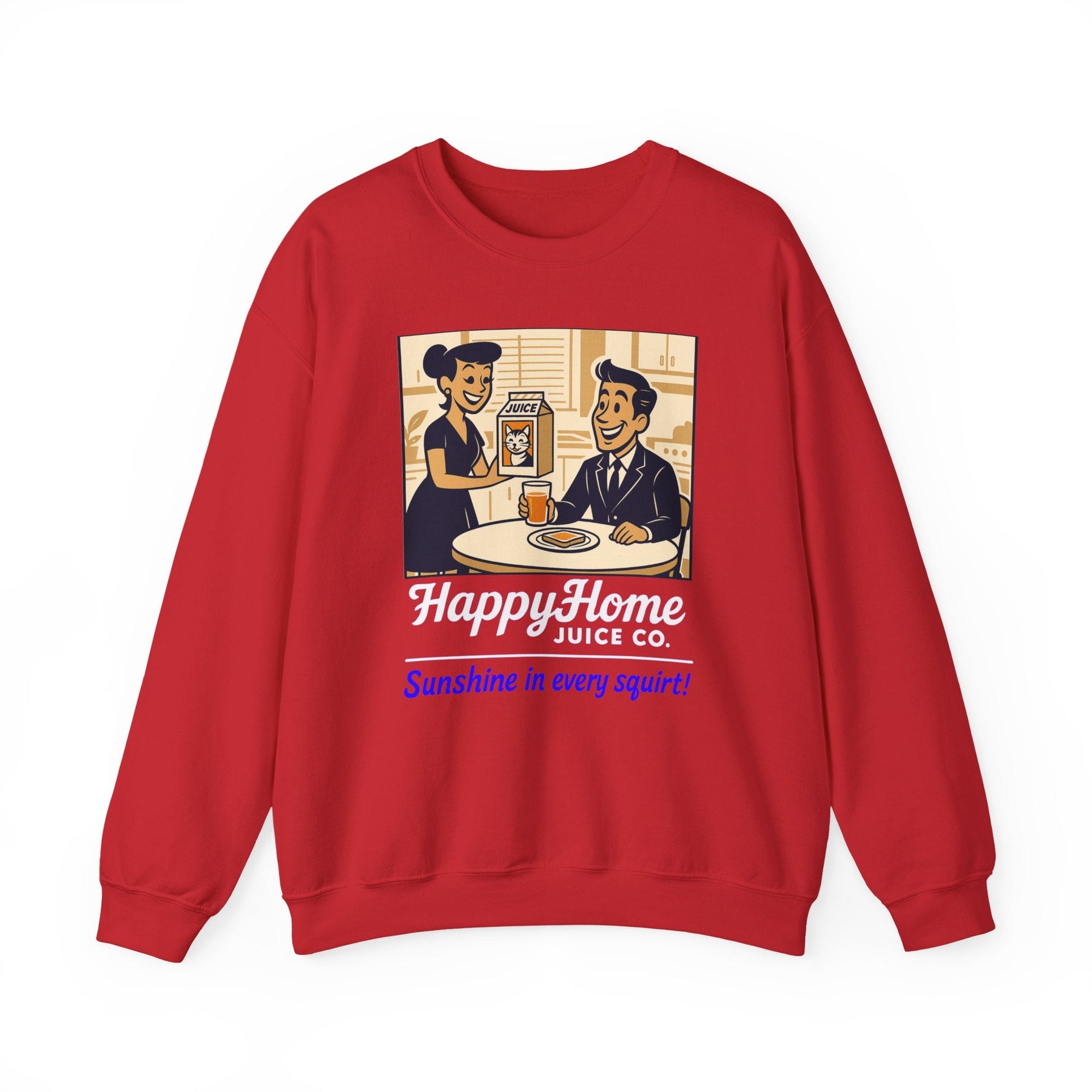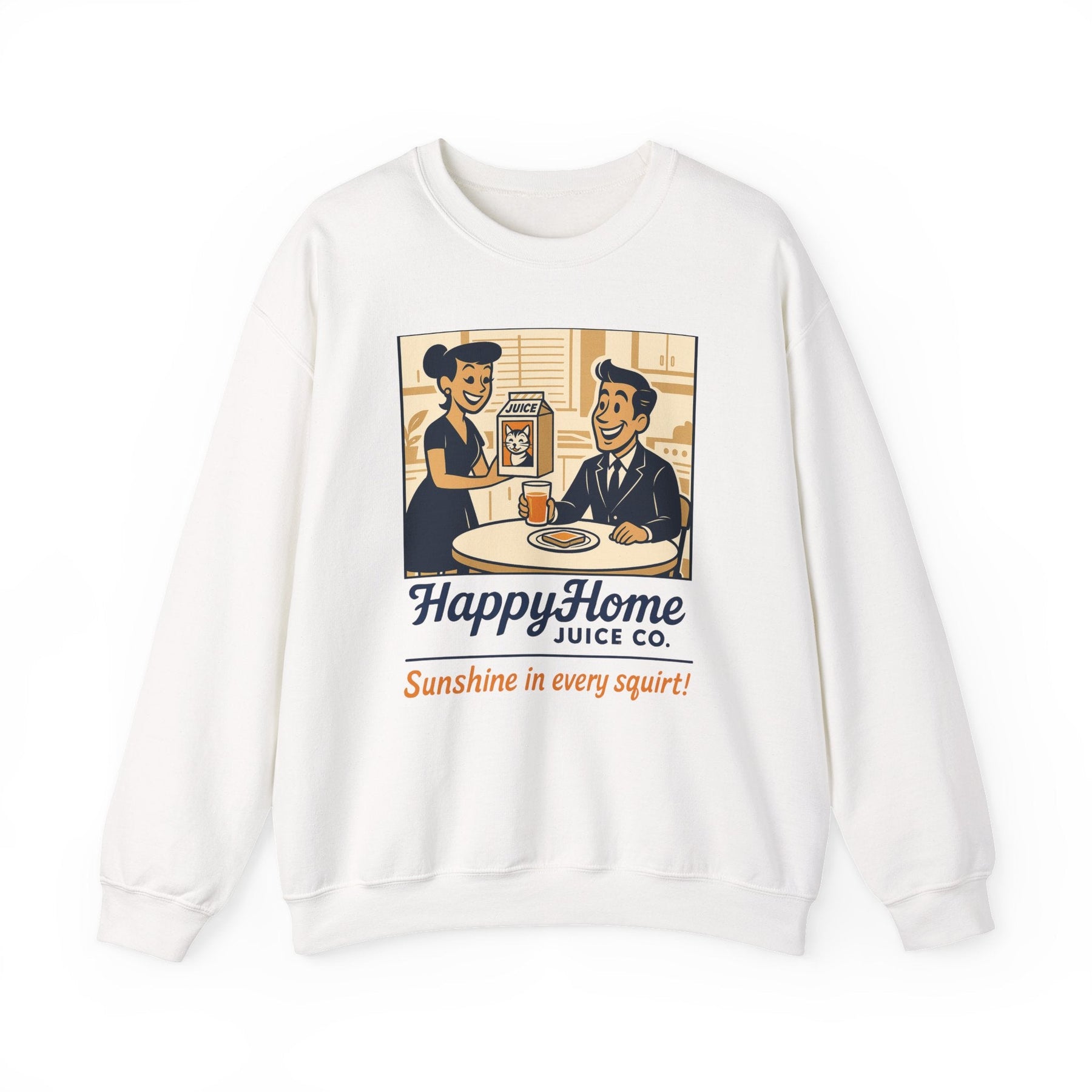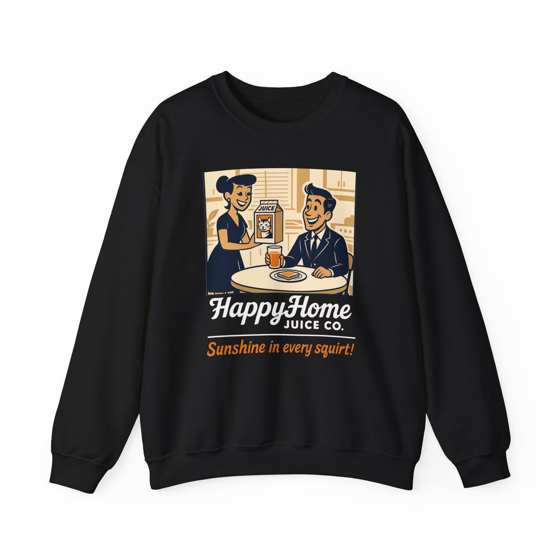 Embrace this retro family breakfast ad for Happy Home Juice Company. This vintage-inspired juice ad, "Sunshine in every squirt", is an ironic, and whimsical sweatshirt with a surreal twist.